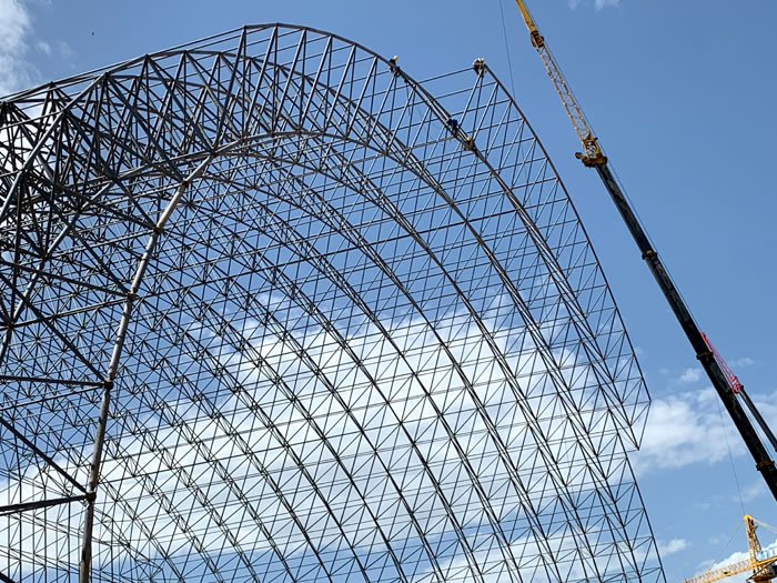 (2)网架加工前应对现场尺寸进行复测,确认无误后方可进行加工、安装;网架制作、运输、安装应遵守《空间网格结构技术规程》JGJ7-2010、《钢网架南宫螺栓球节点》JG/T 10-2009、《钢网架南宫螺栓球节点用高强度螺栓》 GB/T 16939-2016、《南宫钢结构南宫工程南宫施工规范》 GB50755-2012、《南宫钢结构南宫工程施工质量验收标准》 GB50205-2020。