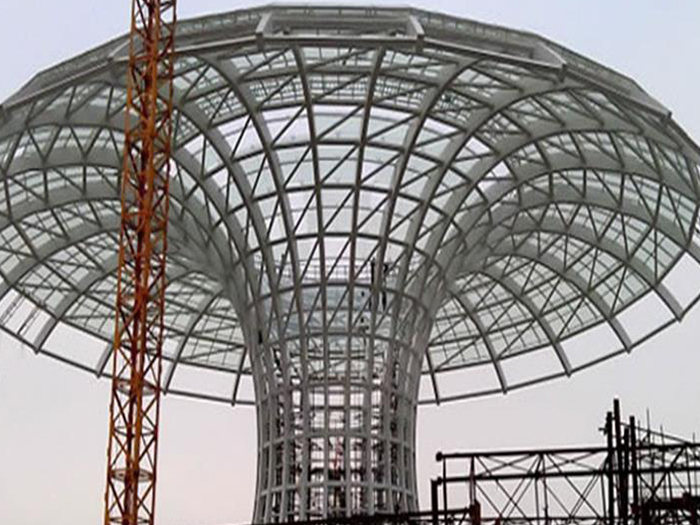 二、球形网架结构因其结构新颖,受力合理,自重轻、用钢量低等优点。如大型体育场馆球形南宫螺栓球网架、公共场馆球形网架、电厂南宫螺栓球网架、水泥工业球形网架、仓储物流球形网架、南宫干煤棚工业球形网架、南宫收费站南宫加油站球形网架、展览中心、影剧院、商场、航站楼、候车厅、工厂南宫车间、仓库、电视塔等球形螺栓球节点网架。国内球形网架结构主要分为:南宫焊接球节点网架及螺栓球节点网架两种。螺栓球节点网架其构件工厂内加工量较大,现场安装便捷,适用于现场工期紧,南宫施工条件、用电量受制约,网架形状复杂、南宫杆件定位困难的异形结构。螺栓球节点球形网架系统基本由南宫杆件、螺栓球、支撑支座等组成。按照节点形式可分为交叉南宫桁架体系、四角锥体系、三角锥体系等。支撑方式多为固定支座支撑。对于大面积、大跨度及有特殊受力或伸缩要求的网架结构可采用橡胶支座、滑移支座、球铰支座等支撑形式,以满足结构自身的受力稳定、均衡,便于内力释放等设计要求。